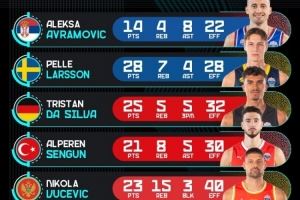 欧锦赛官推晒昨日高光表现:申京21分8板5助 武切维奇23分15板
